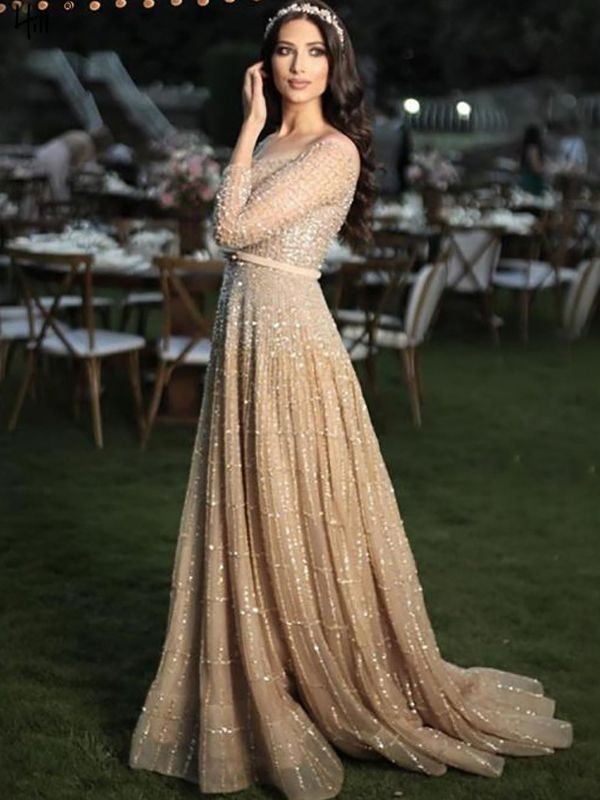 Smilprince Wholesale Sequin Prom Dresses – Foreign Trade New Slimming Arm-covering Bridal Gown Elegant Hostess Evening Dress with Beadwork