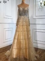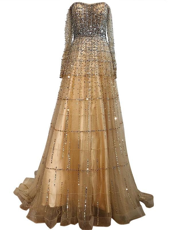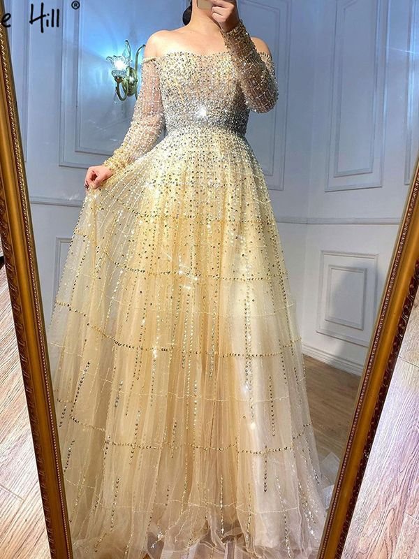 Smilprince Wholesale Sequin Prom Dresses – New Gold High Waist Dreamy Beaded Engagement Gown Luxury Hostess Dress LA71315