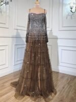 Home Dress Smilprince Wholesale Sequin Prom Dresses – Art Exam Brown One-Shoulder Luxury Beaded Evening Gown for Hostess LA70292