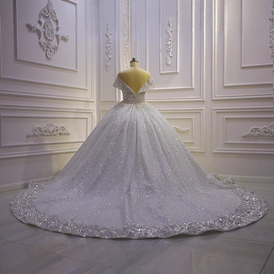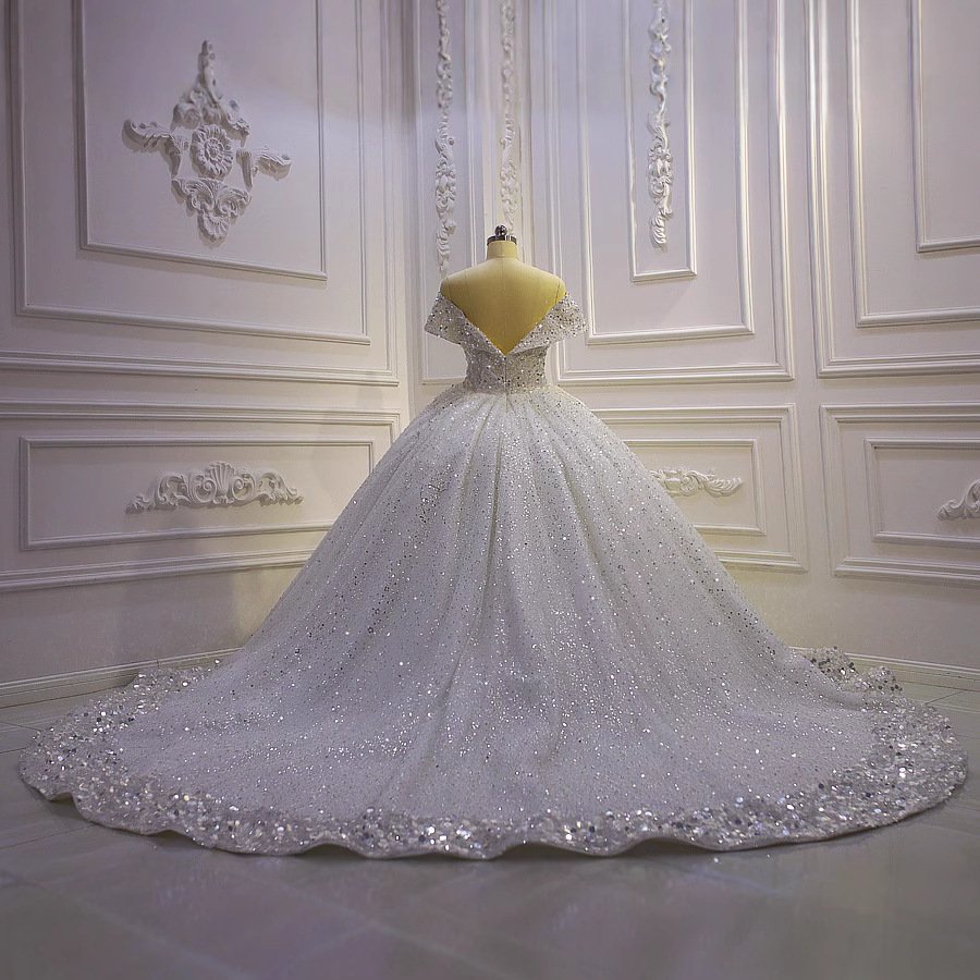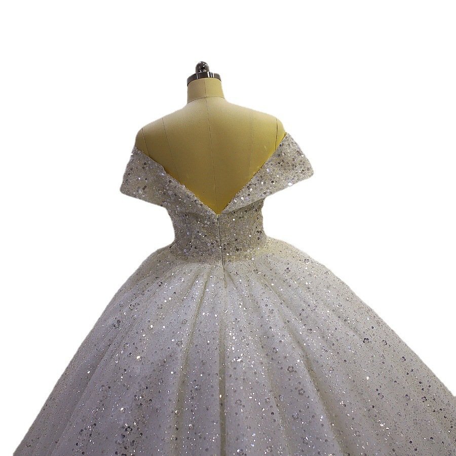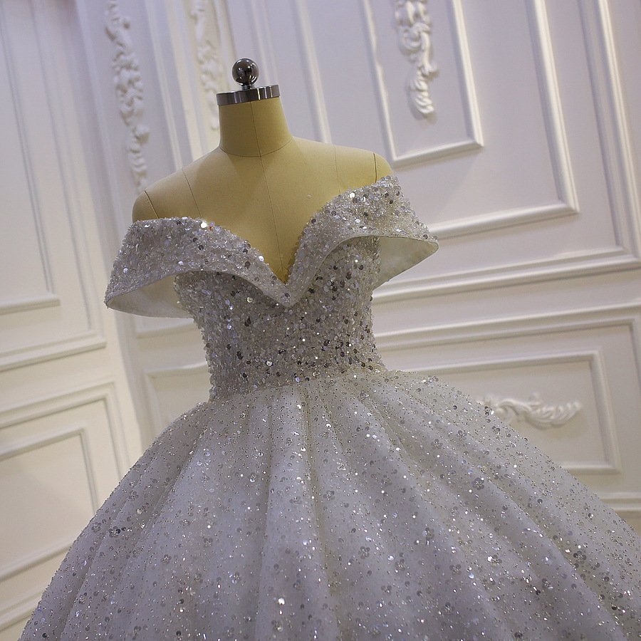 Smilprince Wholesale Sequin Prom Dresses – Foreign Trade Amazon 2025 New Plus Size Off-shoulder Sequin Lace Court Style Wedding Gown