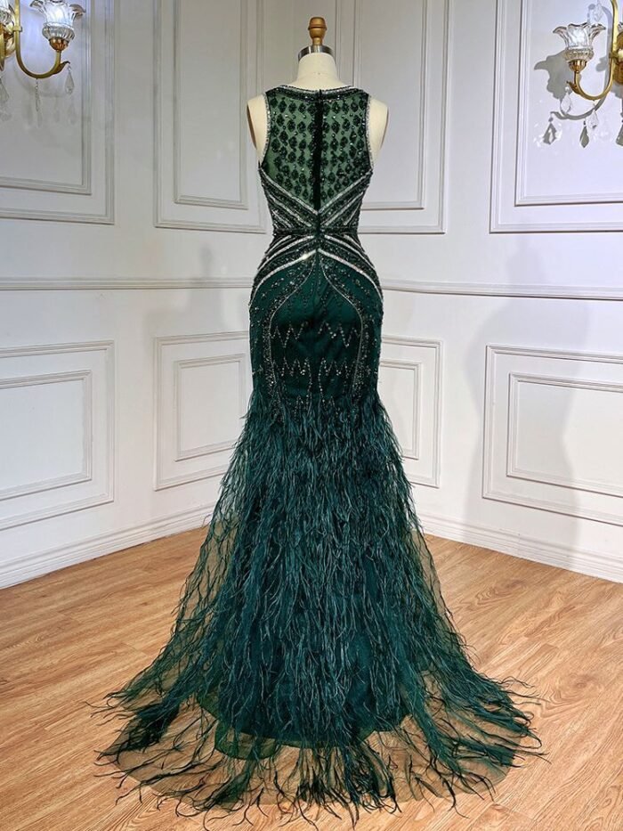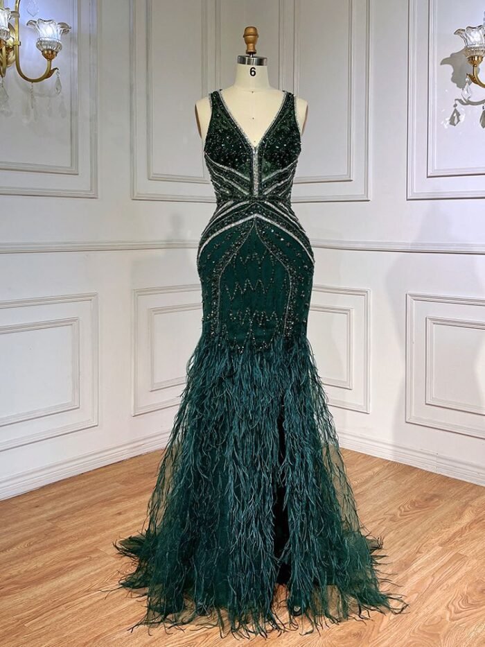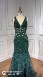 Smilprince Wholesale Sequin Prom Dresses – Green Sexy Slim-Fit Elegant Luxury Feather Long Gown Wedding Banquet Hostess Evening Dress LA71845