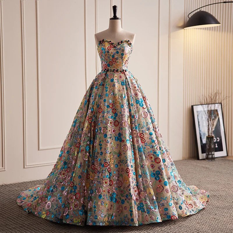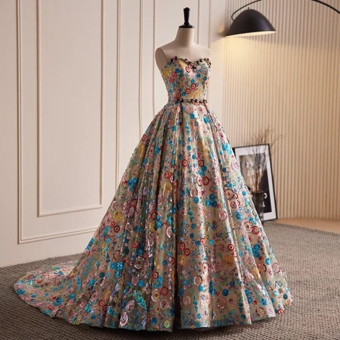 Smilprince Wholesale Sequin Prom Dresses – New Sequin Appliqué Strapless Lace A-line Party Dress Floor-length Women’s Gown