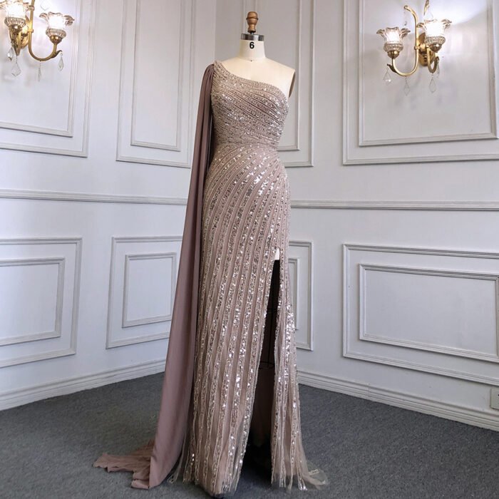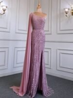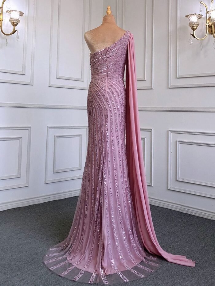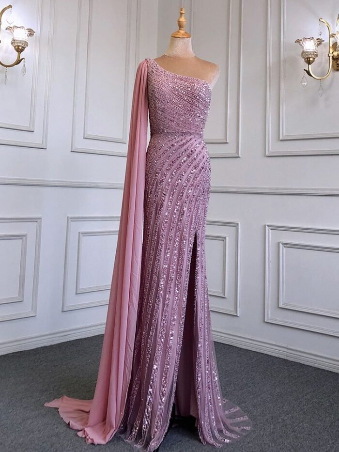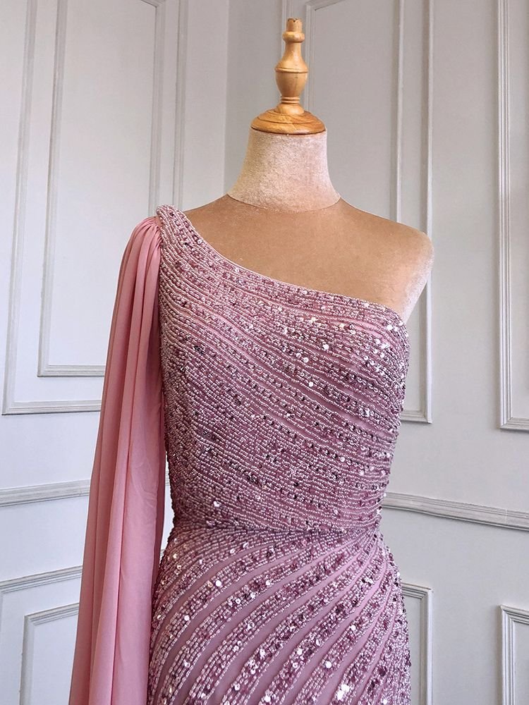 Smilprince Wholesale Sequin Prom Dresses – Pink One-Shoulder High-end Slim Fit Slit Bridal Gown Elegant Hostess Evening Dress LA71708