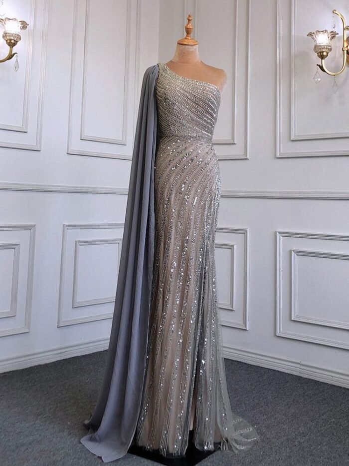 Smilprince Wholesale Sequin Prom Dresses - One-Shoulder Lace Bridal Gown with Small Train Elegant Slim Fit Beach Wedding Dress for Destination Photoshoot $30.00