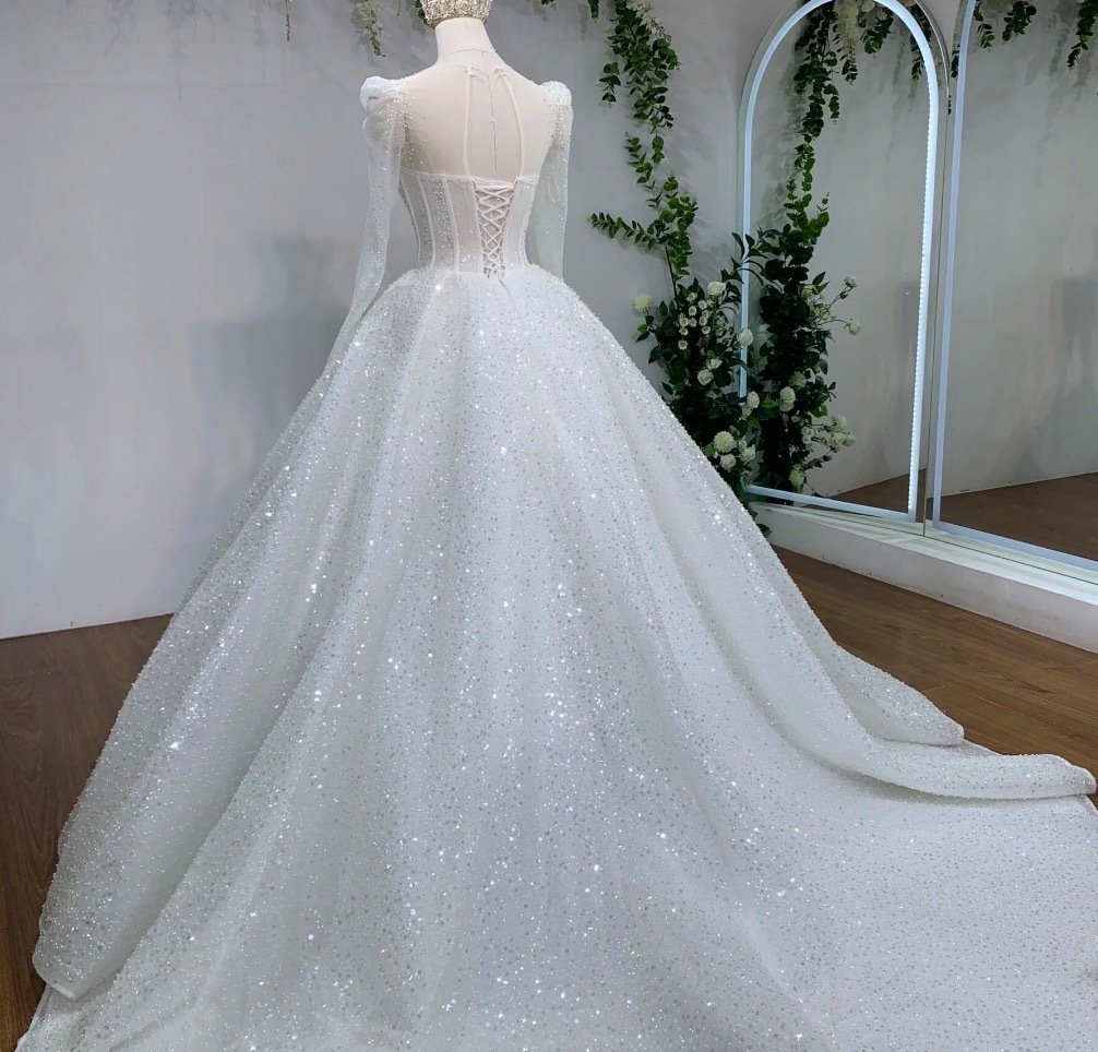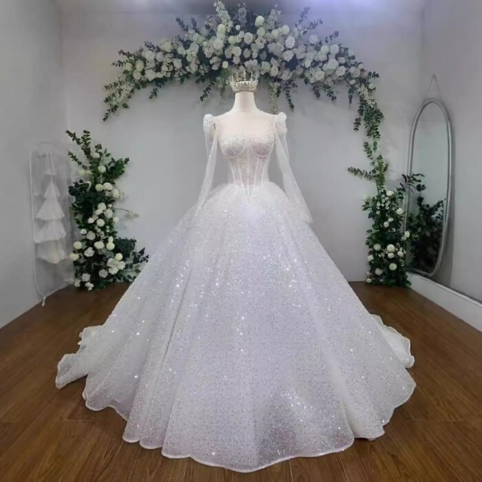 Smilprince Wholesale Sequin Prom Dresses – Wedding Dress New Beaded Ball Gown Luxury French Style Bride’s Wedding Gown with Train